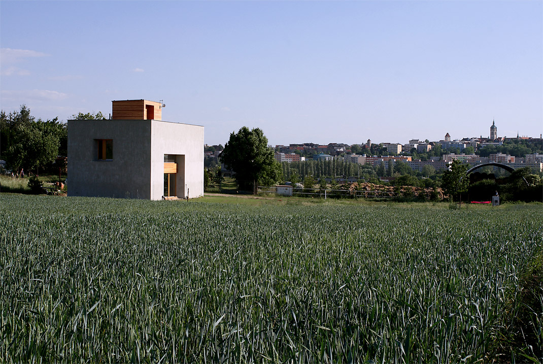 Umístění domu ve středu nevelké parcely na okraji Mělníka akcentuje propojení domu s charakteristickými výhledy do okolí. V každé fasádě je zapuštěn jediný otvor, rámující specifický a pro každou sranu jiný výhled – na vinici, panoráma města, barokní kapli. Velikost a proporce okenních otvorů je určena především vztahem mezi interiérem a charakterem jednotlivých výhledů. Zapuštění oken chrání místnosti před ostrým slunečním světlem a vytváří v interiéru hluboké niky pro vestavný nábytek.